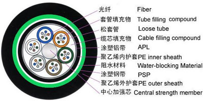 ● 逐道工序阻水油膏填充,全截面阻水松套管結(jié)構(gòu),涂塑鋁帶縱包后擠制一層聚乙烯護(hù)套