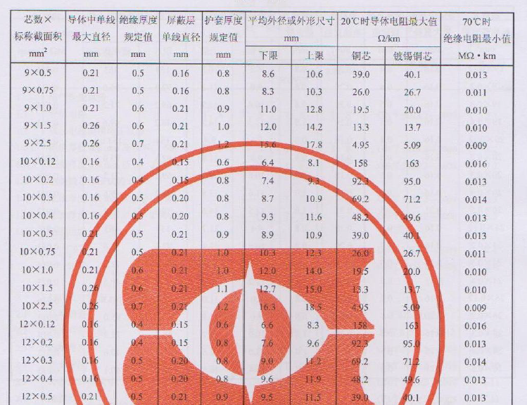 導體材料:符合GB/T 3956-2008《電纜的導體》標準的第5類絞合銅導體的要求。默認不鍍錫。